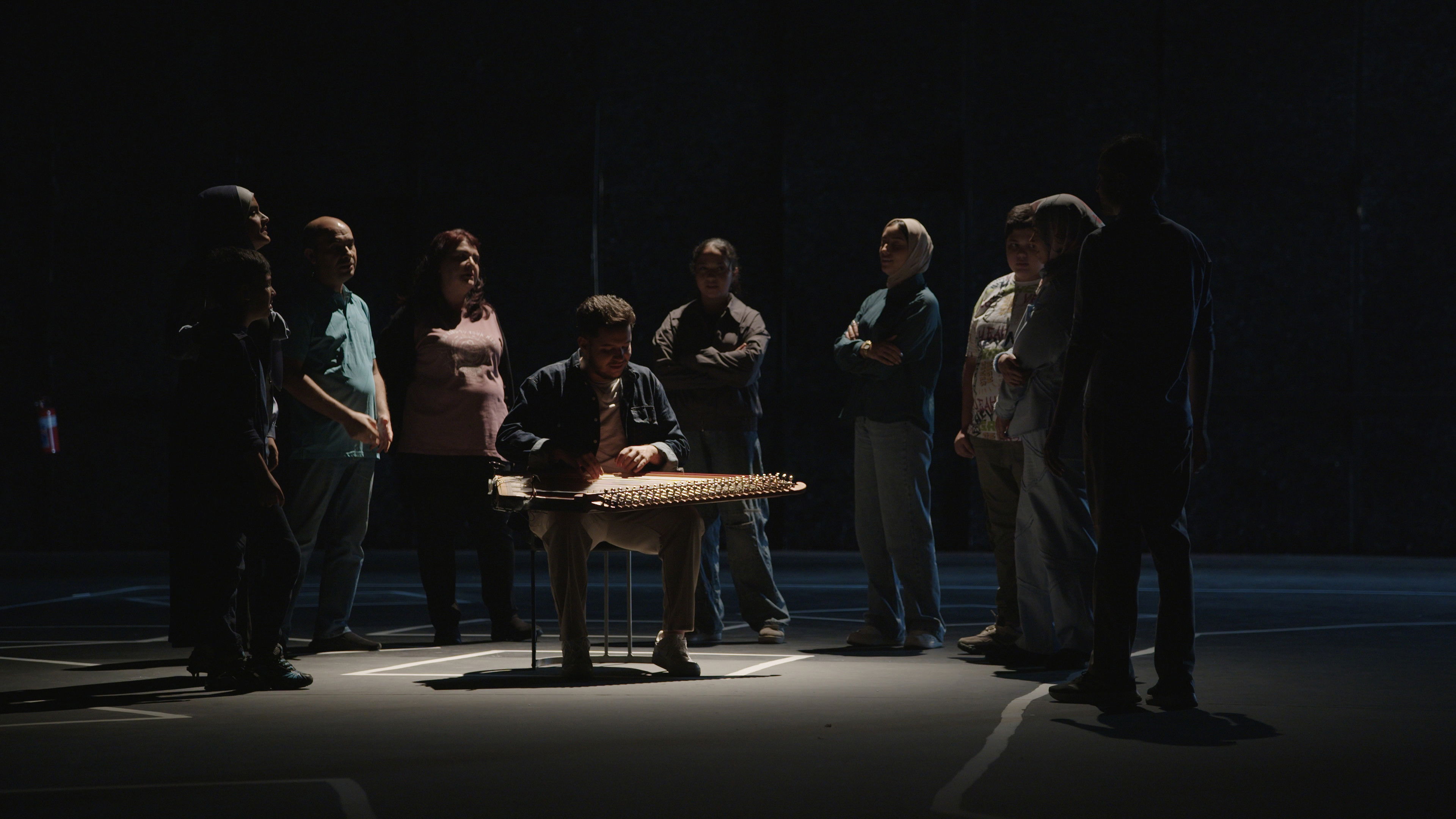 A map of Gaza, its towns, camps and neighbourhoods. White paint on a black ground. Within the crudely drawn outlines, nine refugees who escaped the inferno tell their stories.