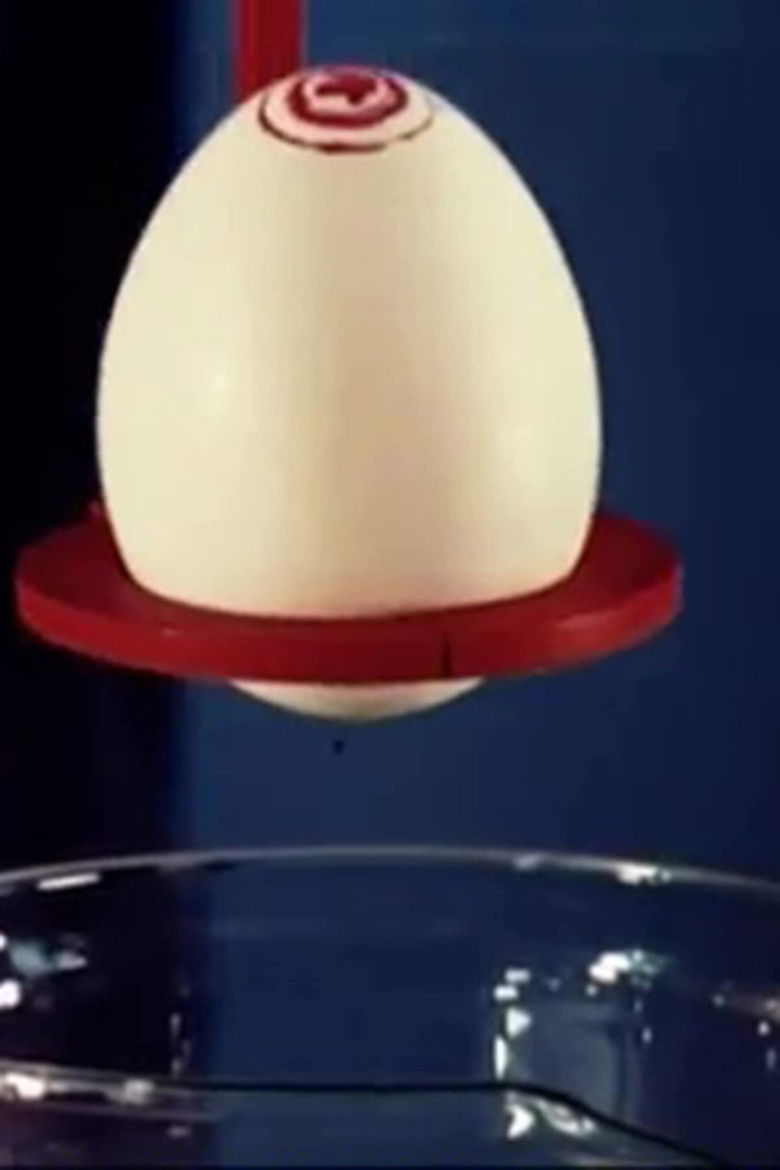 Egg factory. The eggs are arranged in orderly rows and march in rhythm. One small egg falls out of the circles measuring the size. The other eggs laugh at him. In the paint department, all eggs are painted in bright colors. Only the small egg remains white and sad. Finally, however, it turns out that only it hatches a yellow chicken.