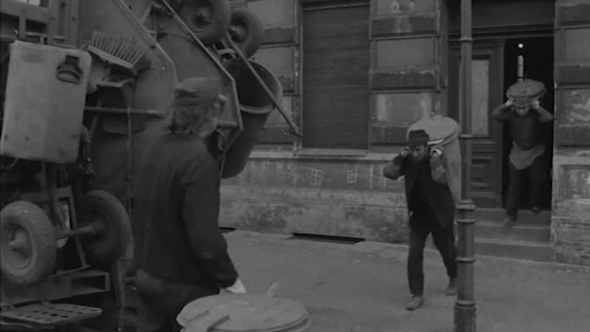 The film shows a workday of a garbage truck with garbage men on their tour through Prenzlauer Berg, especially in the area around Kollwitzplatz.