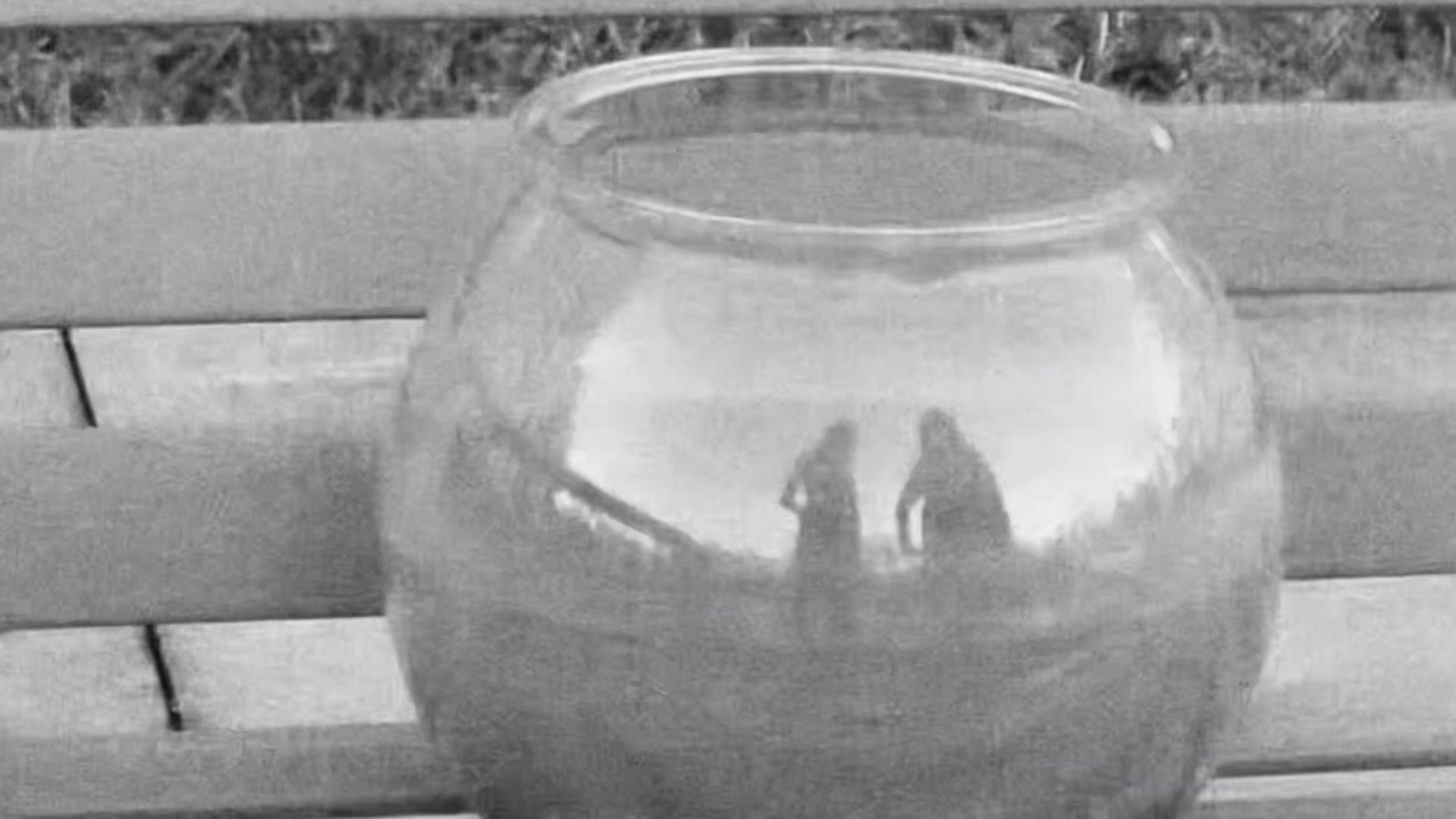 Two young girls find a fishbowl.