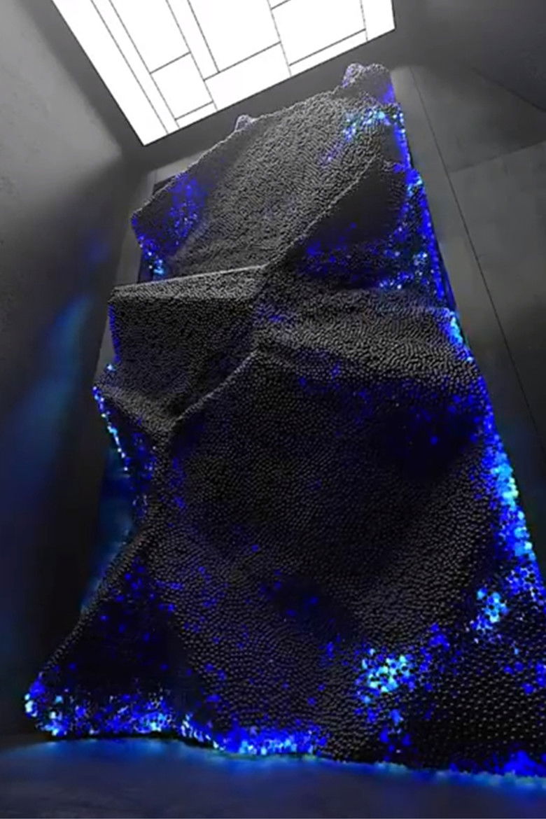 Computations is an experimental art film directed and designed by Maxim Zhestkov at Zhestkov Studio. It speculates a distant future when computation moves from the opaque ‘black boxes’ of our laptops and devices out into the world. Comprised of billions of particles, these dynamic systems sway and undulate in perfect synchronization. These are benevolent thinking machines that visualize, calculate, and communicate, through coordinated movement and coloured illumination. They are artfully embedded in architecture, perform in space, and demonstrate how each tiny element contributes to the construction of an elegant, emergent whole.